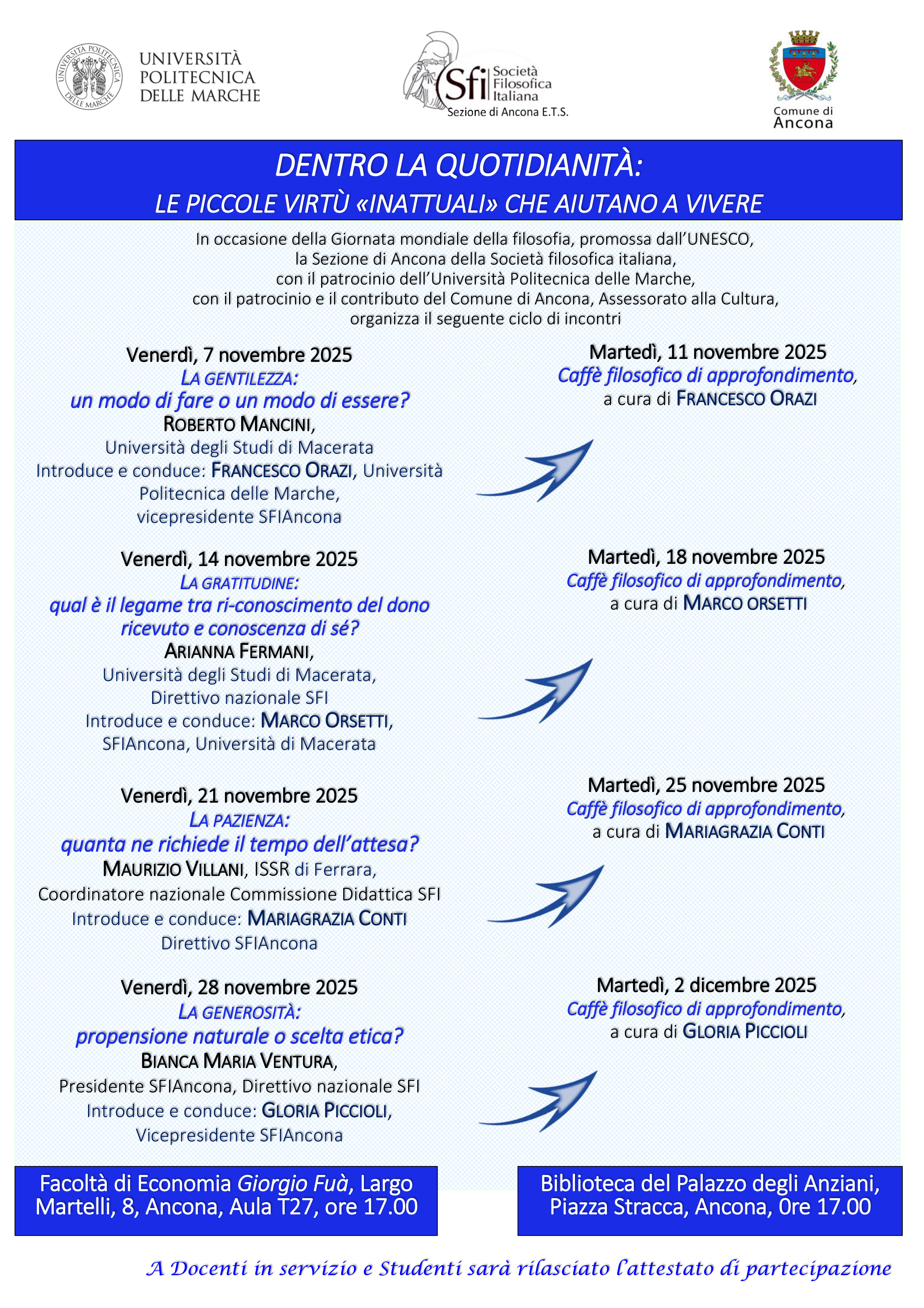 DENTRO LA QUOTIDIANITA': Le piccole virtù "inattuali" che aiutano a vivere > 7, 14, 21 e 28 NOVEMBRE 2025 Ancona - Aula T27 | ore 17:00