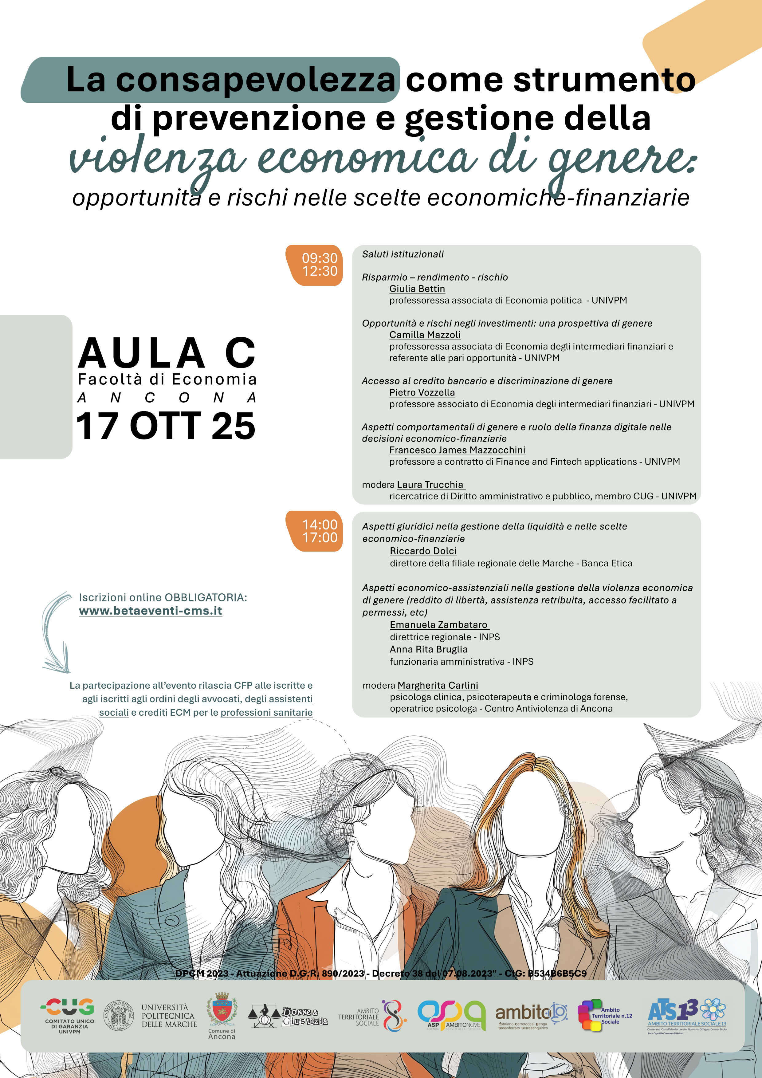 LA CONSAPEVOLEZZA COME STRUMENTO DI PREVENZIONE E GESTIONE DELLA VIOLENZA ECONOMICA DI GENERE: OPPORTUNITÀ E RISCHI NELLE SCELTE ECONOMICHE-FINANZIARIE > 17 OTTOBRE 2025 Ancona - Aula C | ore 09:30