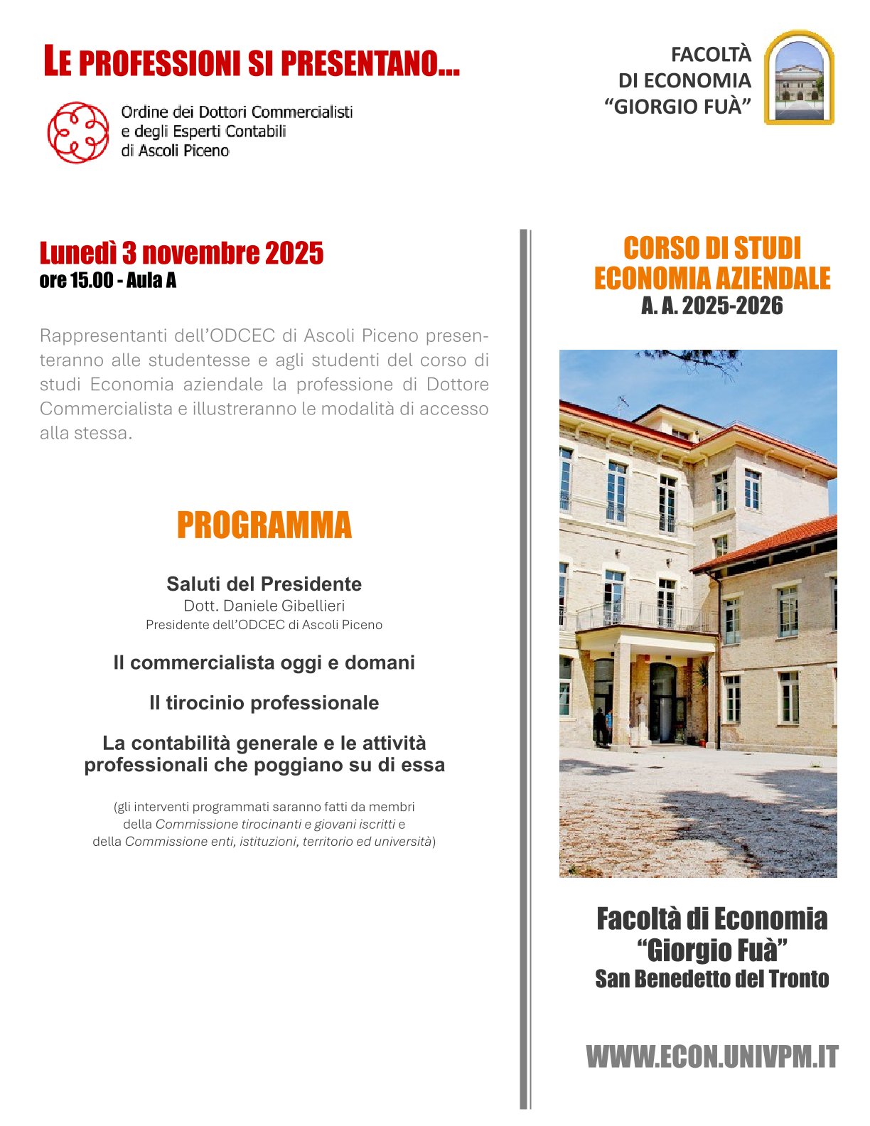 LE PROFESSIONI SI PRESENTANO... > 3 NOVEMBRE 2025 San Benedetto del Tronto - Aula A | ore 15:00